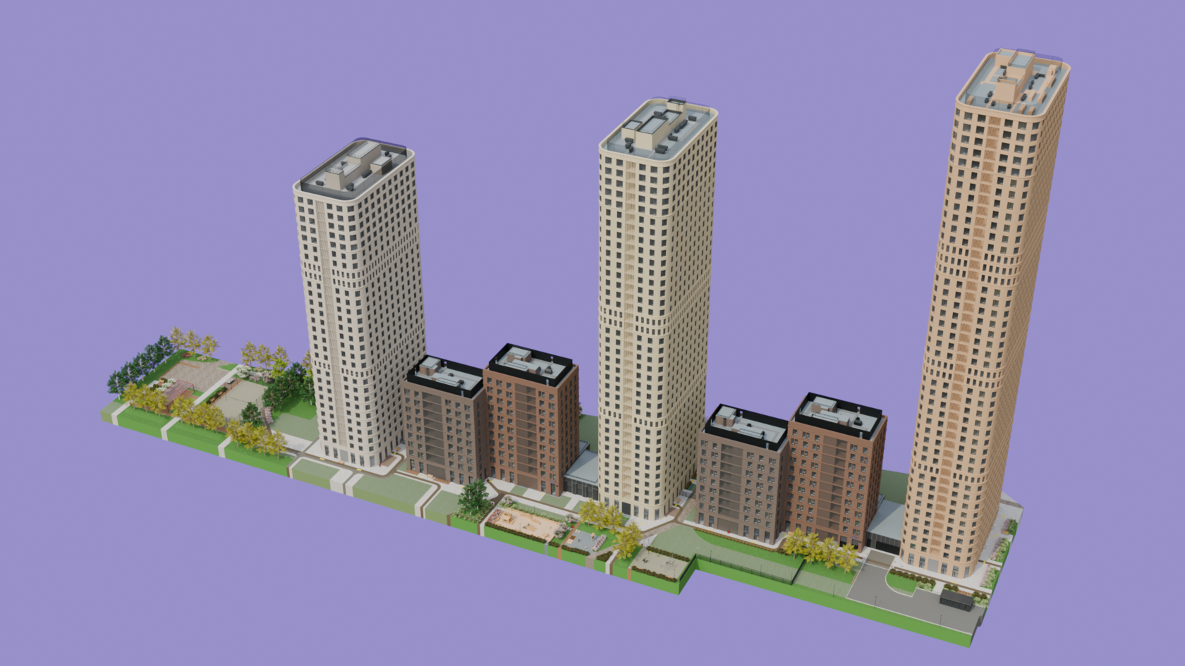 Территория площадью 5,87 га. На модели благоустройства отображены: