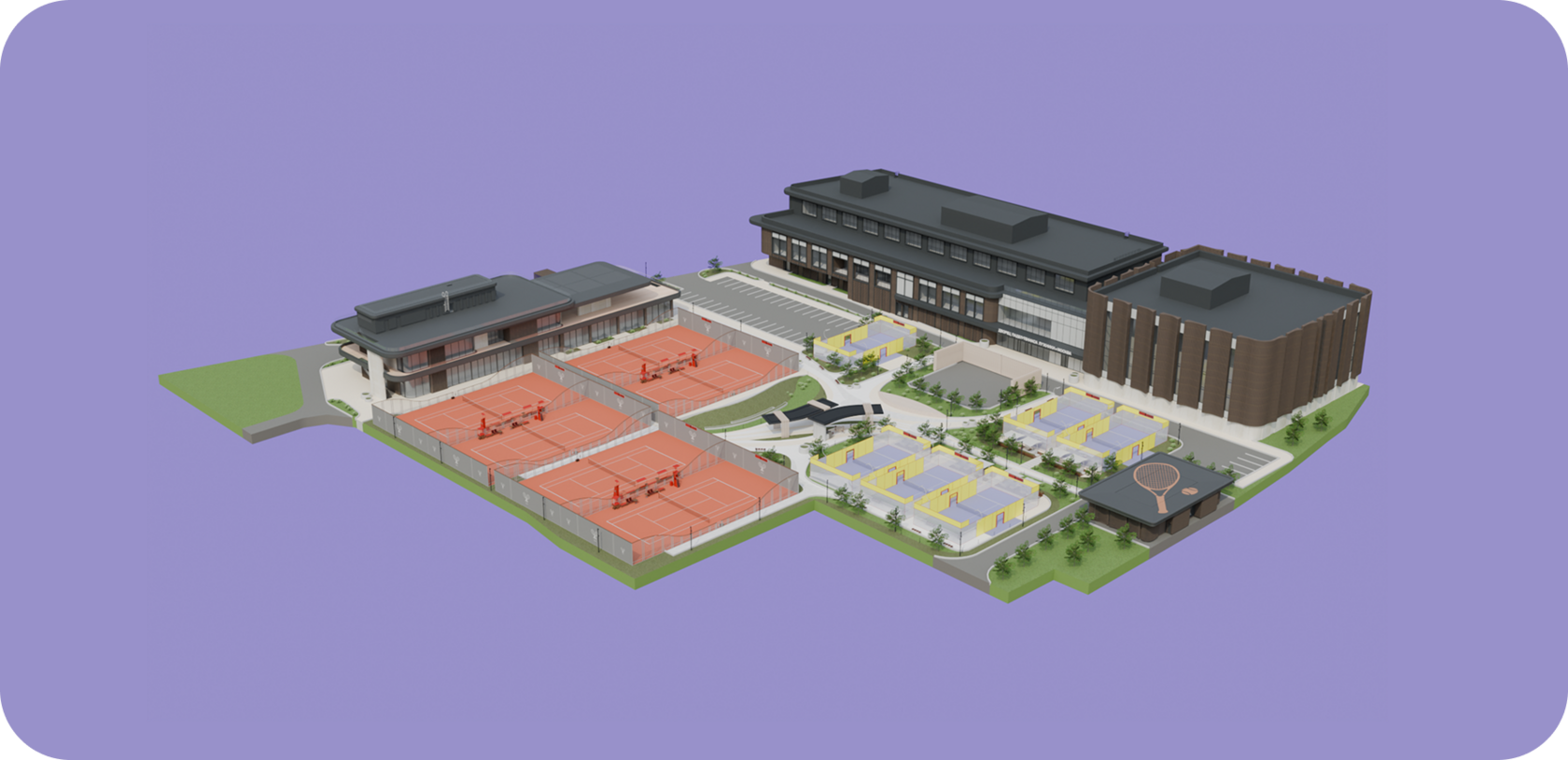 Падл Центр «Лужники» - здание, состоящее из двух корпусов и объединенные между собой входной зоной. Здание со скругленными углами в плане и с ориентировочными размерами 130×40м и высотой 18 м. Наружная отделка стен - мраморные панели, декоративные деревянные панеля. Большое остекление с жалюзи. Крыша плоская, неэксплуатируемая, с зенитным остеклением, ограждена по периметру парапетом. Наличие зенитного фонаря требует моделирования внутреннего простанства. На кровле размещаются навесы для защиты технического и инженерного оборудования от осадков, выполненные из металлических панелей. Двери входов из алюминиевого профиля с остекленными дверными полотнами.